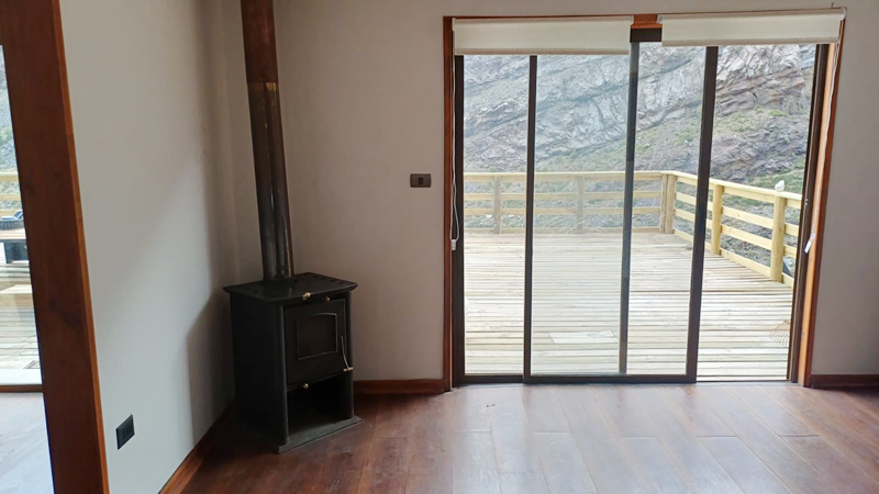 El interior cuenta con todas las comodidades esenciales: dormitorios equipados, cocina funcional, baño privado y áreas comunes pensadas para descansar y compartir. Grandes ventanales permiten apreciar el entorno desde el amanecer hasta el atardecer, llenando cada rincón de luz natural y vistas increíbles.